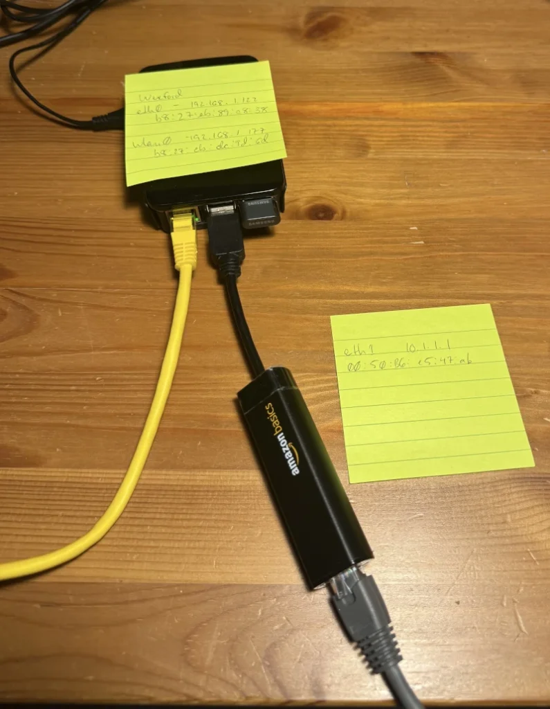 In this post, we will set up a Raspberry Pi with a USB Ethernet port so that we can connect devices and monitor the data being transmitted. The external Ethernet and internal Wi-Fi will be used to connect devices and capture all the traffic using tcpdump. Our Raspberry Pi will act as a “man-in-the-middle”—no more secrets.